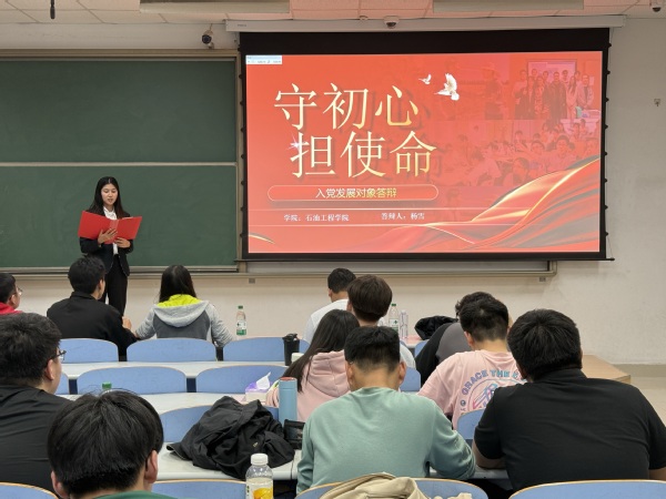 此次答辩设置 PPT 个人汇报、知识问答、问题考察三个环节。个人汇报环节中,答辩人员围绕自我介绍、入党动机、工作生活表现等内容展开,详细阐述自身思想成长历程及今后努力方向;知识问答内容涵盖党章、党的理论知识、党纪学习教育、中央八项规定精神学习教育等,考察答辩人对党的应知应会基础知识的掌握程度,同时进一步引导入党积极分子强化理论学习;问题考察环节结合“人工智能发展与学习”、“如何理解自找苦吃”、“青年人如何进行科技创新”等实际问题,要求答辩人围绕 “怎么看、怎么做” 谈认识、讲举措,深入了解其思想深度与现实表现。评委就答辩对象的学习情况、宿舍安全卫生、工作要求落实、作用发挥等日常表现和答辩情况进行最终评分,作为推选发展对象的依据。