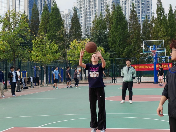 赛程中,各队秉持“友谊第一,比赛第二”的体育精神,为现场观众呈现了多场精彩对决。球员们在赛场上挥洒汗水,默契传切、精准远投与顽强防守轮番上演,场边掌声与喝彩声此起彼伏,尽显石工院研究生团结协作、奋勇拼搏的品质。赛事还特别设置了中场女生投篮积分环节,各队女生踊跃参与,每一次命中都为球队贡献关键分数,进一步增添了比赛的趣味性与参与度。