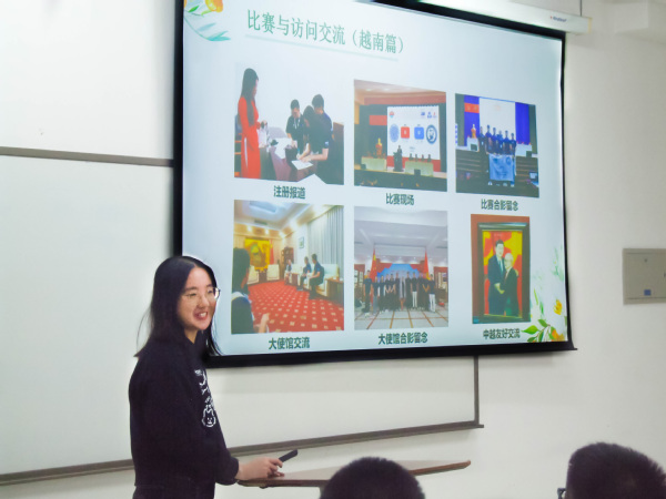 侯慧琳分享了赴越南、马来西亚参加SPE亚太知识竞赛的经历,讲述了异国见闻与使馆交流的暖心片段,并解答了饮食、语言等方面的问题。尹泽琛聚焦哈萨克斯坦与阿联酋访学经历,介绍了项目获取渠道、关键流程和资助政策,并以“已识乾坤大,犹怜草木青”总结个人感悟。高佳贝以“喜与忧”为主题畅谈韩国交流经历,分享了克服困难的过程与文化碰撞的收获,鼓励大家勇敢跳出舒适圈。吴家龙作为大一出国的“萌新”,生动介绍了韩国风俗、旅游体验与沟通技巧,为低年级员工提供了实用建议。他特别强调:“国际交流不仅是地理空间的跨越,更是文化认知的融合。”