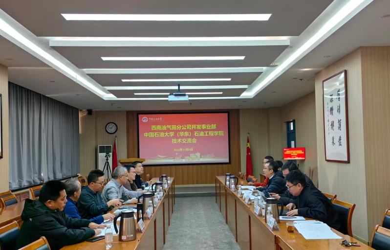 【本站讯】12月4日,西南油气田分公司开发事业部地质导向中心主任陈虎、地质管理中心主任夏国勇一行7人来院进行技术交流。公司副经理郭天魁及相关学科方向教师参加会议,郭天魁主持会议。