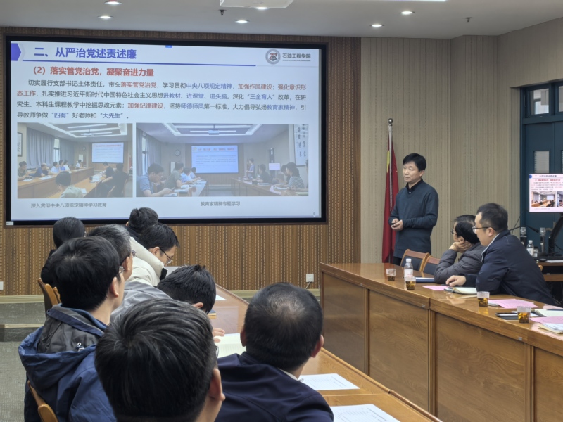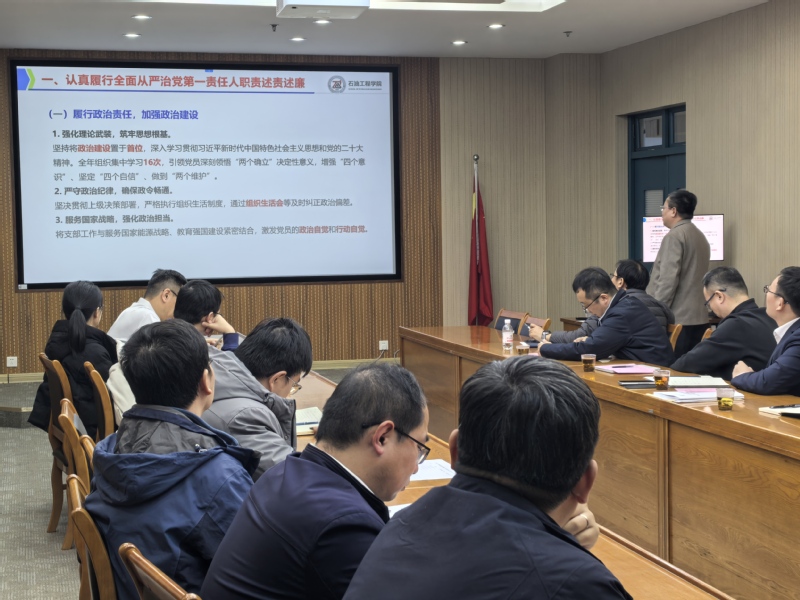 油气藏工程研究所党支部、油气井工程研究所党支部、油气开采工程研究所党支部、油气田化学研究所党支部、海洋油气工程研究所党支部、智能油气田研究所党支部、实验教学中心党支部、公司机关党支部等8个党支部书记分别汇报了履行全面从严治党述责述廉和抓基层党建责任情况。其中履行全面从严治党责任主要包括加强政治建设情况、带头落实管党治党责任情况、落实意识形态工作责任制情况、加强组织建设情况、加强作风建设情况、加强纪律建设情况;抓基层党建责任主要包括加强政治建设情况、宣传教育党员情况、基层组织建设情况、党建引领发展情况,“党支部如何深化党建与业务融合”是本年度党支部书记述职“必答题”。述职完成后,全体参会人员进行现场打分评议。