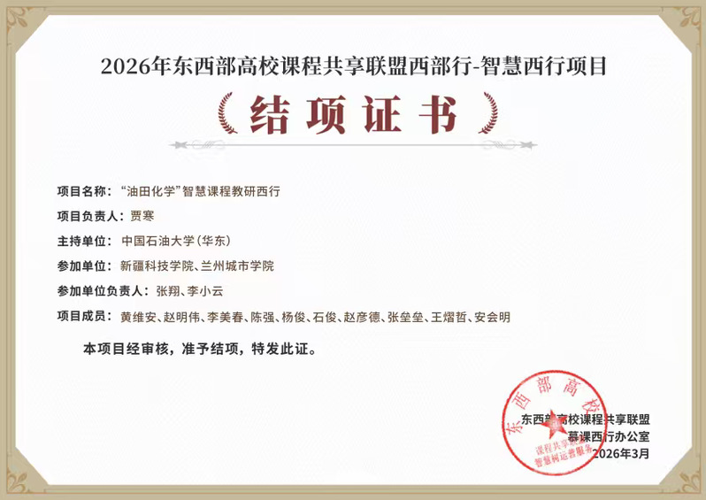 此次“油田化学” 智慧课程教研西行项目,为东西部高校课程共建、教研协同提供了可复制的实践范例。未来,各参与单位将持续深化合作,完善智慧课程教研模式,让慕课西行成果惠及更多西部高校,以教育协同之力赋能西部能源产业高质量发展,助力我国高等教育均衡发展与能源强国建设。