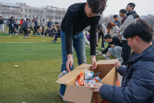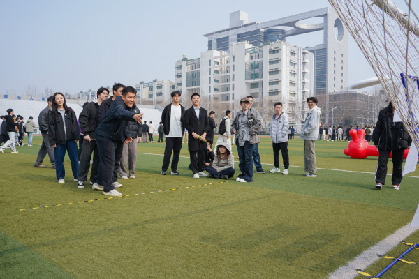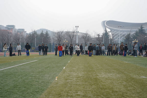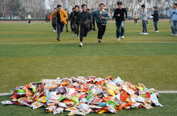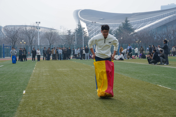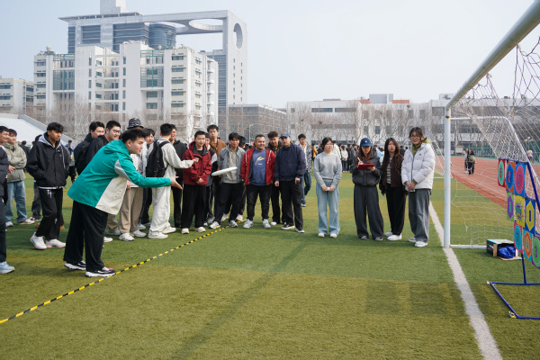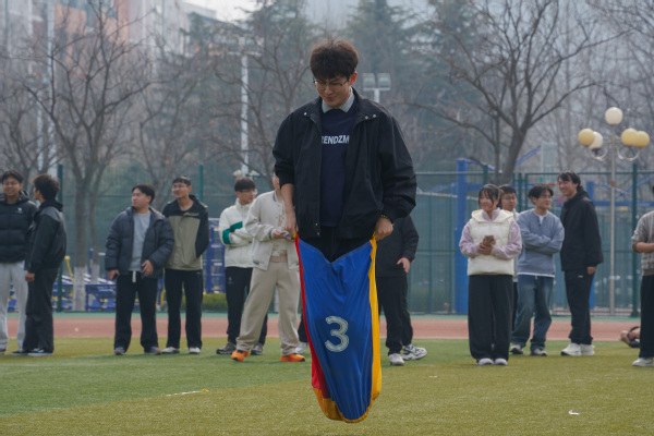 运动会以班级为单位参赛,设置了飞盘九宫格、趣味袋鼠跳、竞速毛毛虫、零食大作战四个项目。每一个项目都兼具挑战性与娱乐性,吸引毕业生热情参与。哨声响起,赛场瞬间沸腾,欢呼声、呐喊声此起彼伏,尽显学子昂扬向上的精神风貌。