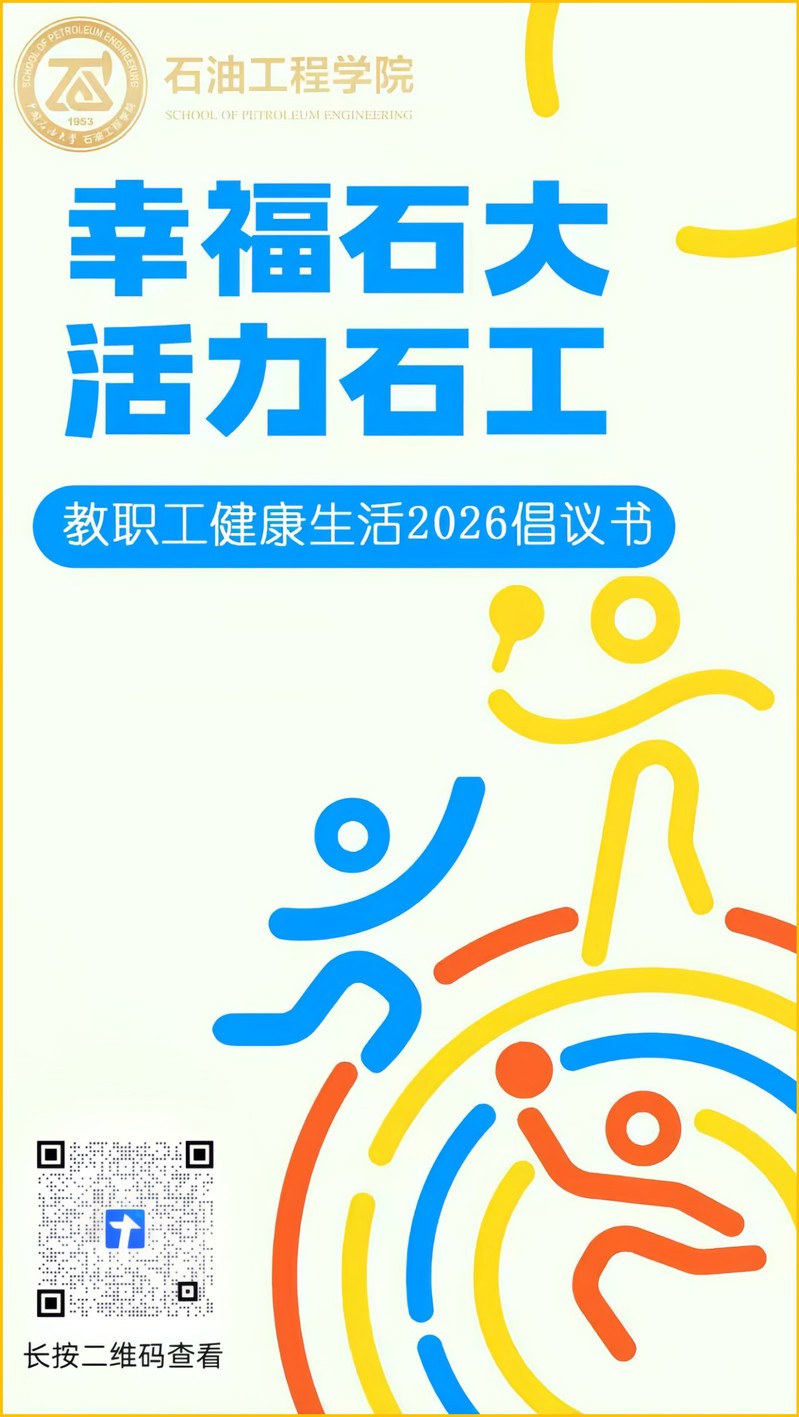 【本站讯】为进一步提升全院教职工健康意识,倡导科学健康的生活方式,营造关注健康、追求健康的良好氛围,公司工会特发布《“幸福石大、活力石工”教职工健康生活2026倡议书》,呼吁每位教职工将健康理念融入日常,从点滴做起,主动管理自身健康,以强健的体魄、饱满的精神状态投身于工作与生活,共同拥抱更加美好的未来。