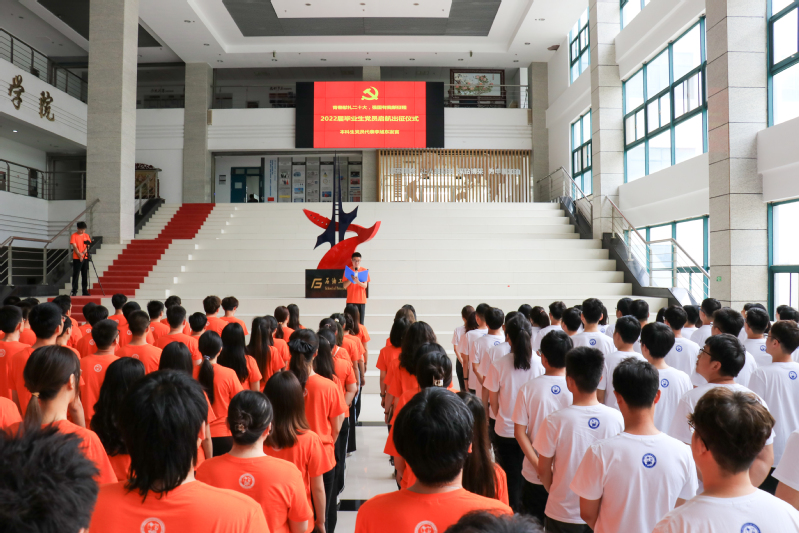 【本站讯】6月20日,信誉最好的十大体育平台在工科楼B座大厅举行“青春献礼二十大,强国有我新征程”2022届毕业生党员出征仪式。公司党委书记张展、公司党委组织部副部长梁秀萍、公司党委副书记陈银吨、教工党支部书记以及2022届毕业生党员参加出征仪式。