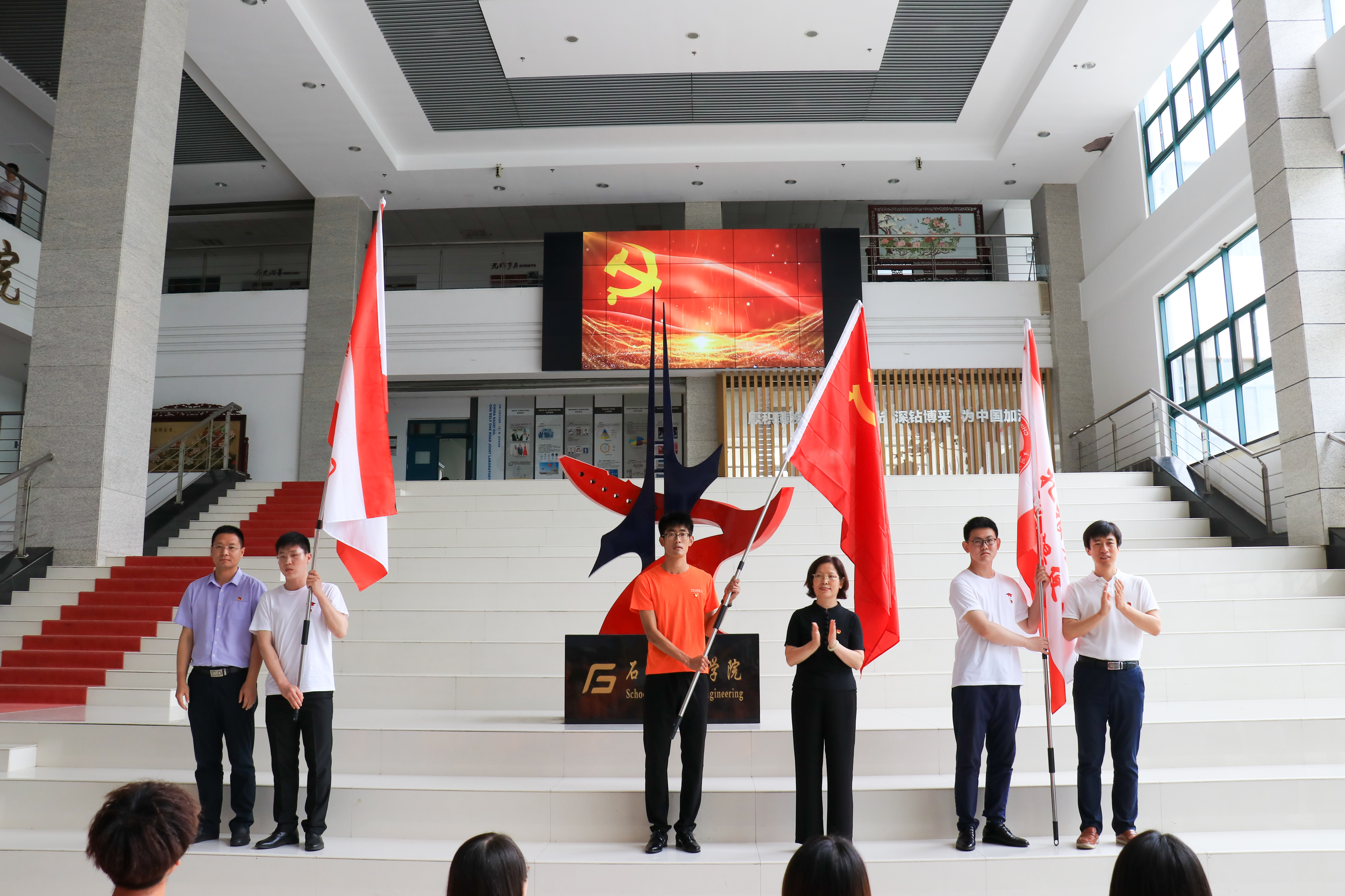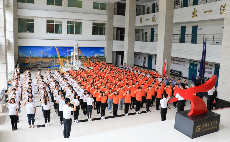 仪式初始,全体党员起立,奏唱国歌。石工卓越党支部胡卓成带领全体毕业生党员重温入党誓词,用实际行动来履行自己当初的诺言。随后,2018级本科毕业生党员李旭东发言,“我将出征祖国最需要的西部大地,立志将在公司学到的本领贡献给祖国的石油事业,将满腔的热血注入到祖国工业的血脉中,用长腿去奔跑,用大脑去创造,用双手去探索,用真心去服务”李旭东说道。 研究生毕业生党员康立新发言,他对全体毕业生党员发出倡议:要充分发挥共产党员的先锋模范作用,以实际行动践行“家国同心 艰苦奋斗 惟真惟实 追求卓越”的石大精神,把能源的饭碗牢牢端在自己手里;以服务国家能源战略需求为己任,恪守为石油献青春的使命,牢牢握紧时代的接力棒!