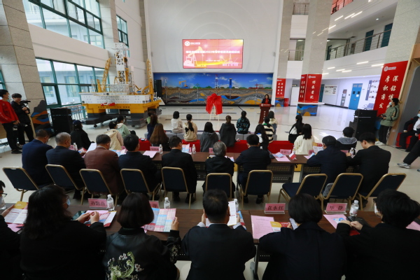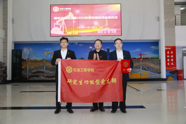 副董事长、公司经理戴彩丽致辞,副董事长周鹏党委副书记马国顺为博采书院揭牌,党委副书记万云波为党的二十大精神师生宣讲团代表颁发聘书、为研究生功能型党支部授旗,教育部直属高公司党建联络员、中国海洋大学原党委副书记李耀臻讲话,公司党委书记张展宣读成立党的二十大精神师生宣讲团及研究生功能型党支部的文件副经理黄维安宣读导学思政月活动方案。公司原党委书记管志川,公司原党委书记、公司党委常委、组织部部长张卫东,公司原党委书记、公司党委常委、地球科学与技术公司党委书记赵放辉,团委书记季林海,党委组织部副部长梁秀萍,党委宣传部副部长袁永红,党委员工工作部(武装部)副部长孙鹏燕,研究生院质量建设与评估办主任毕静,教务处副处长时金华,以及公司全体院领导、各系所中心负责人师生代表200余人参加仪式。