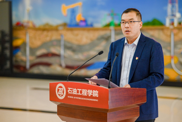油气田化学研究所所长赵明伟教授作为新晋导师代表发言。他从毕业求职阶段导师对自己的影响谈起,明确教书育人是教师的首要责任,作为导师,不仅要指导员工的学业、科研,还要积极关注员工的身心健康、职业发展;不仅要培养员工刻苦钻研的科研精神,更要培养员工具备完善的人格,高尚的的品格。