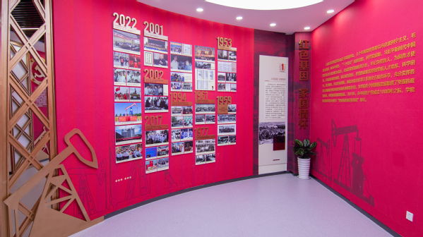 “红色基因·家国情怀”部分以年份和照片相穿插的方式集中展示了公司精神的一脉传承。以时间为轴线,以重要事件为节点,呈现了不同历史时期公司师生爱党爱国、砥砺奋进的动人画面,展现了一代代石工人在“我为祖国献石油”的精神感召下,书写的“为中国加油,为民族争气”的辉煌篇章。