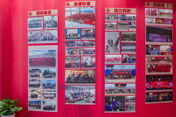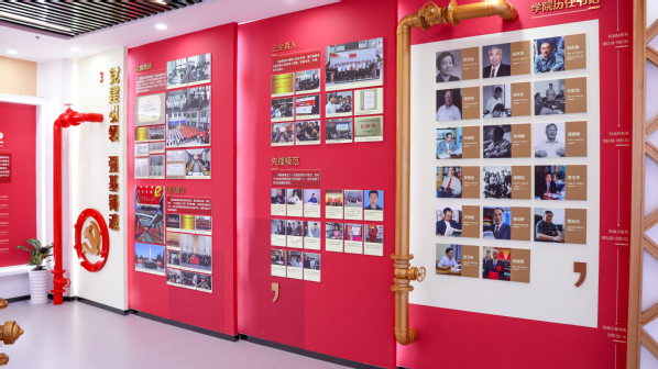“党建引领·强基铸魂”部分以递进式墙面造型,展示了公司在党建引领发展、基层党组织建设、三全育人等方面的取得的突出成果,以及对党员先锋模范和历任书记的简要概述。一幅幅老照片呈现了公司在不同时期开展党建工作的珍贵资料,一位位先进人物充分发挥着模范的榜样力量。