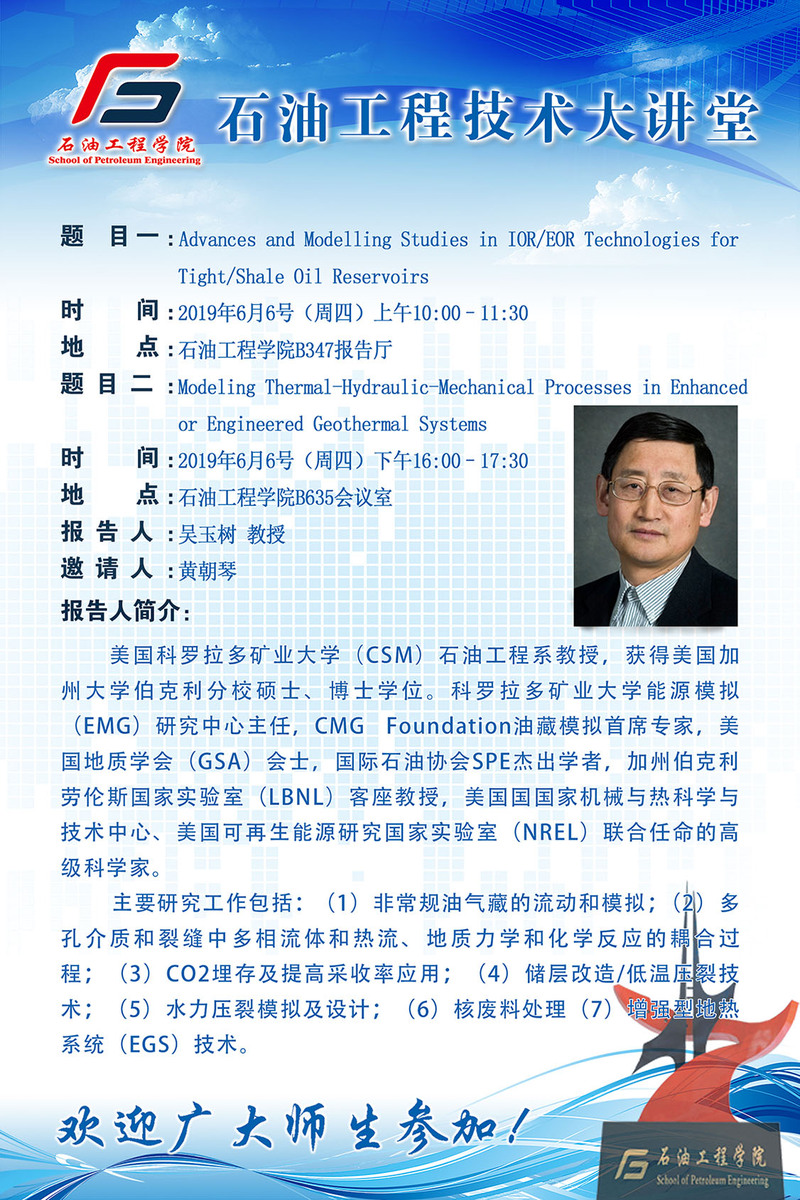 【石油工程技术大讲堂(第20期)】吴玉树教授学术报告