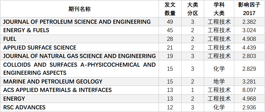 表1 公司2018年1-12月SCI发文量前10的期刊及分区与影响因子