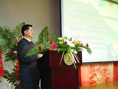 陈月明教授做了题为“油藏工程科研回顾”的学术报告,他满怀希望展望了石油工业的未来和天然气水合物等新的研究领域,并在会后向大会来宾签赠了新著《水驱油田高含水期稳产措施宏观决策方法》和《油藏经营管理》。