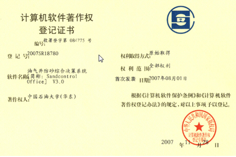 近日,公司董长银副教授等研制开发的油气井防砂综合决策系统―Sandcontrol Office软件顺利通过了国家版权局软件著作权登记并获得版权登记证书。