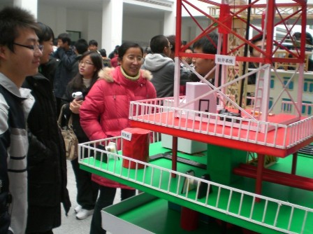11月26日,公司在青岛校区讲堂群大厅举办了第四届“石油钻采模型设计大赛”作品展。本次大赛共收到45件作品,展出作品均由2008级本科生设计、开发和制作,内容涉及海洋平台、集输船舶、井架、抽油机等多项石油钻采设备。青岛开发区电视台对此进行了报道。