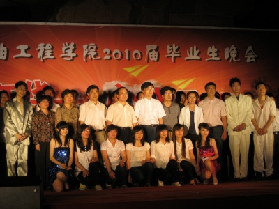 经理姚军教授代表公司致辞,他首先祝贺全体毕业生顺利完成学业,预祝他们在未来的道路上一帆风顺,为石油行业和祖国的发展贡献自己的力量,同时也欢迎毕业生能常回公司看看、常回家看看。之后,姚经理为毕业生倾情演唱了歌曲《长江之歌》。公司党委张卫东书记虽未亲临现场,但仍心系毕业生,祝同学们“学成在石工,破浪待长风;起飞唐岛湾,翱翔在蓝天”。教师代表王业飞教授与毕业生一同表演了歌伴舞《校花》,老师们的精彩演出博得同学们的阵阵掌声。