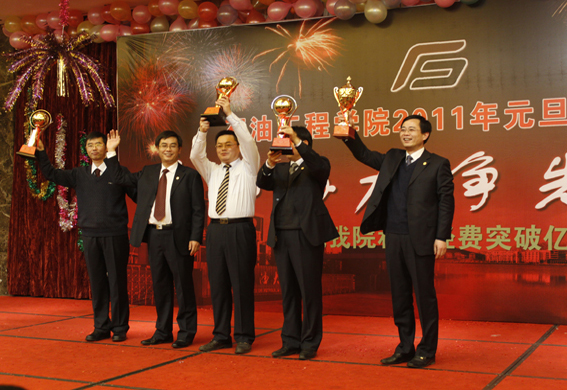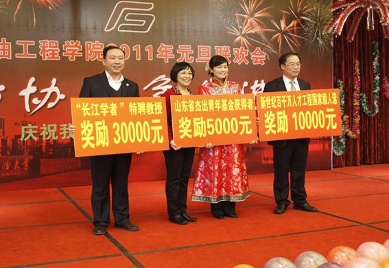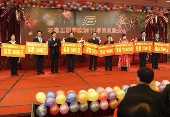联欢会对2010年度为公司做出贡献的教职工代表进行了颁奖,高层次人才、国家及省部级科技成果奖、国家及省部级精品课程、个人科研经费超过500万元的教师、山东省优秀博士论文、老员工科技活动优秀指导等50位教职工代表上台领奖。山董事长、王瑞和副董事长、杨茂椿董事长助理等上台宣读颁奖词并未获奖者颁奖。“科研就是创新,在这条道路上,充满了攀登的艰辛,也充满了探求的乐趣、攀登总有风险在,花开却在峰顶处”,副董事长王瑞和向国家级、省部级科研成果奖获得者颁奖时如是说。