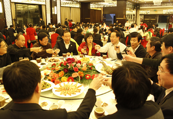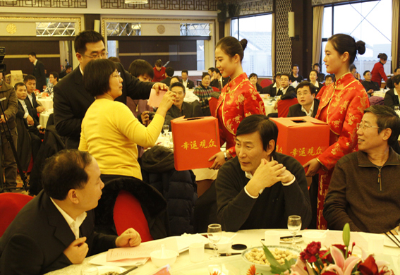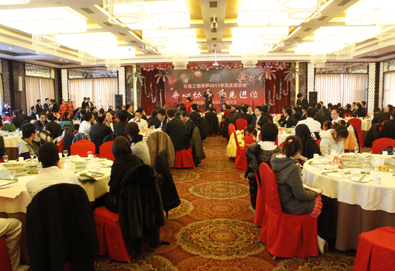 伴着严冬的丝丝寒意,玉色的兔年满载着希望和梦想向我们走来。12月29日,丰泽山庄国宴厅内红灯高挂、欢歌笑语,到处洋溢着节日的喜庆气氛,公司2011年元旦联欢会在这里隆重举行。董事长山红红、副董事长王瑞和、董事长助理杨茂椿、院友代表、机关各部门领导以及公司全体教职工240余人参加了此次联欢会。