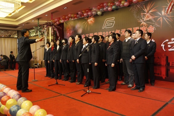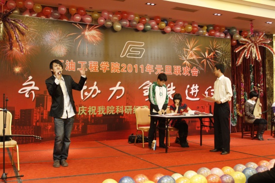下午3点,元旦联欢会正式拉开帷幕。经理姚军首先致新年贺词,他总结了公司2010年在人才培养、团队建设、科学研究、实验教学、员工工作等方面取得的成绩,他感谢广大教职工所表现出的团结协作和无私奉献精神,对公司的支持表示了衷心感谢。2010年是公司发展史上极为辉煌的一年:国家级人才实现突破、科研经费首次过亿元,多门课程被评为国家及省级精品课,国家级、省部级科技成果取得重大突破,员工工作再上新台阶。