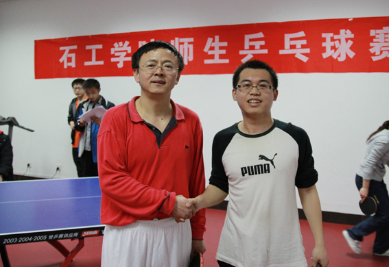 本次比赛分为男单、女单两种形式,比赛采取三局两胜制。参赛队员有9名老师组成教师代表队和有12名员工组成的两支员工代表队,每只代表队有四名男选手和一名女选手组成,之后四强进行循环赛,胜队记一分,负队记零分,按分数进行排名。赛前,公司党委书记张卫东致辞,鼓励师生赛出风采、切磋技艺、增进友谊。“友谊第一,比赛第二”,各个师生队友跃跃欲试,激情饱满。由李明忠、冯其红、王林、苏玉亮、孙仁远、薛建泉、吴学东、赵晓燕、曲晓琳老师组成的教师队伍展现出精湛的乒乓球技,而由史胜龙、杨戬、王静、张昊等12名07级毕业生组成的员工队也打出了属于年轻人的风采与活力。两队的选手们在比赛过程中,积极拼搏,挥汗如雨,热烈的喝彩声不时传来,兴奋的“好球”声不断。队员们在奋斗的同时享受比赛的乐趣,为大家带来了一场场精彩的视觉盛宴。最终经过激烈角逐,两队以平手结束这场精彩的比赛。这场精彩的比赛将给07级的毕业生们留下无限美好的回忆。