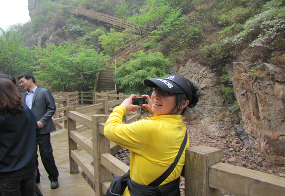 人行河畔小路,大家怀着一份轻松的心情,谈朋友生活友谊、品正宗崂山茶、观深厚崂山道教文化,一路爽朗的笑声与崂山两侧山峰谷色相伴,彻底消除了昔日工作的劳累。作为青岛知名景区,北九水素有“九水画廊”之称,但因受地形、季节所限,本次活动大家虽未经历“涉九水”之乐趣,但旅途时有阵阵细雨相伴,加上当地清幽的自然风光,大家沉浸在一片“画廊”之中,度过了一段与众不同的出游。