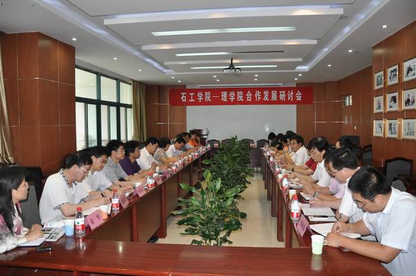 “十二五”如何发展才能迈上新台阶、走向高层次?在学习贯彻公司发展规划的过程中,公司深化与基础学科合作的思路,与理公司加强与优势学科结合的想法不谋而合。6月23日,公司组织召开“石工公司―理公司合作发展研讨会”,双方班子和教授代表围绕团队建设、人才培养、科研合作、成果交流等展开研讨,董事长山红红出席并讲话,公司办公室、研究生院、科技处、团队建设处、高等教育研究所等部门负责同志参加。
