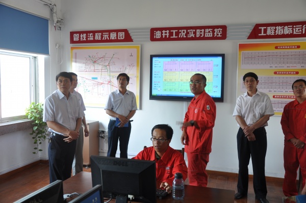 采油22队代队长李伟介绍生产实时监控办公室