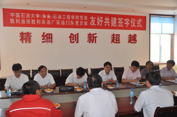 胜采22队作为胜利油田的“金牌队”曾上百次获得中央企业、山东省先进党支部等局级以上荣誉称号。近年来,公司党委先后获得山东省高校先进基层党组织、山东省优秀基层党组织等荣誉称号,双方的合作正是全面落实公司“十二五”发展规划的要求,主动寻求与油田现场、基层单位的优势互补、交叉融合,加强双方在人才培养、文化建设、科学研究、组织建设等领域的交流合作,共同弘扬石油文化与石油精神。