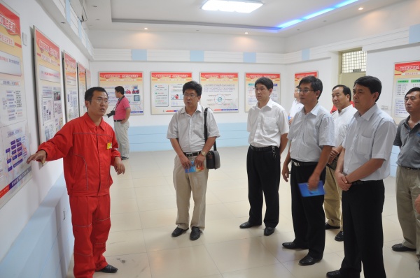 采油22队党支部书记徐支明为公司党委介绍精细管理展厅