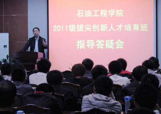 为解决同学们对拔尖班的困惑,尽早使拔尖班顺利运行,10月12日,公司召开石油工程拔尖创新人才培育班指导答疑会,副经理程远方为2011级拔尖班的60名同学进行了指导答疑。