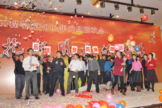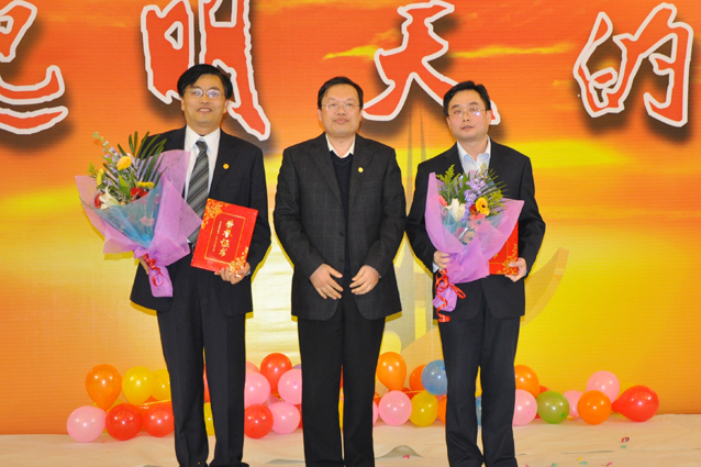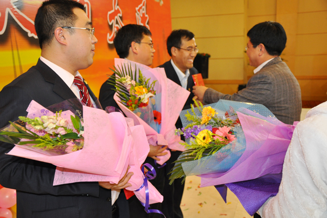 联欢会以“托起明天的太阳”为主题,把新年联欢与青年教师表彰相结合,充分体现了公司和资深教师对青年教师的关心和爱护。联欢会上,长江学者创新团队、教育部新世纪优秀人才、山东省有突出贡献的中青年专家、国家及省部级科技成果奖、山东省精品课等代表上台领奖,一批在教学、科研、国际交流、科学科研服务、员工教育管理、实验室建设、公司管理服务等方面取得优异成绩的青年教师受到公司表彰。当一批批青年教师走上舞台,从颁奖嘉宾手中接过证书和鲜花的时候,台下一次次响起热烈的掌声。越来越多的青年教师走向领奖台,预示着公司一轮红日喷薄欲出,预示着公司生机勃勃,事业之树长青。